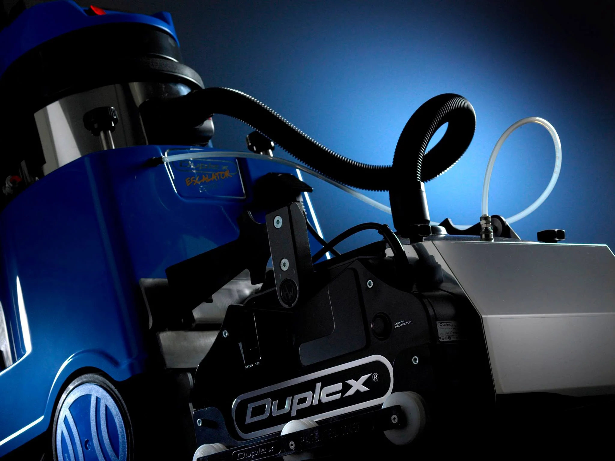 Duplex Escalator kombinerar torrsopning och fuktrengöring för att sätta en ny standard för rengöring av rulltrappor. De dubbla, motroterande extra långa borstarna tränger djupt ner i stegen och avlägsnar effektivt damm och smuts. Därefter följer en lätt fuktskrubbning som löser upp ingrodd smuts utan att överväta rulltrappans känsliga mekanismer. Tack vare det patenterade styrskenesystemet följer maskinen alltid rulltrappan med hög precision.